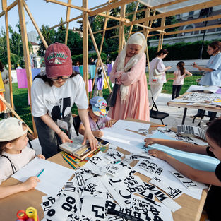 Получившиеся плакаты стали частью коллективной инсталляции, стихийно складывающейся на площадке фестиваля.